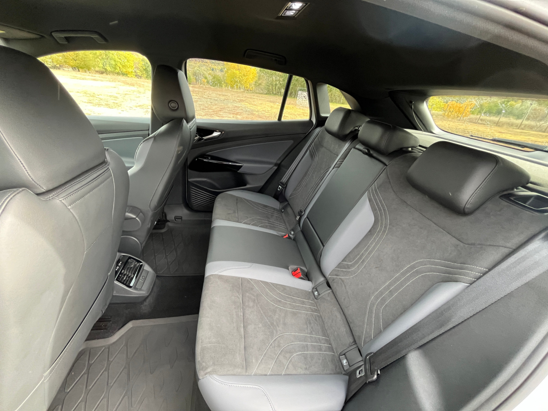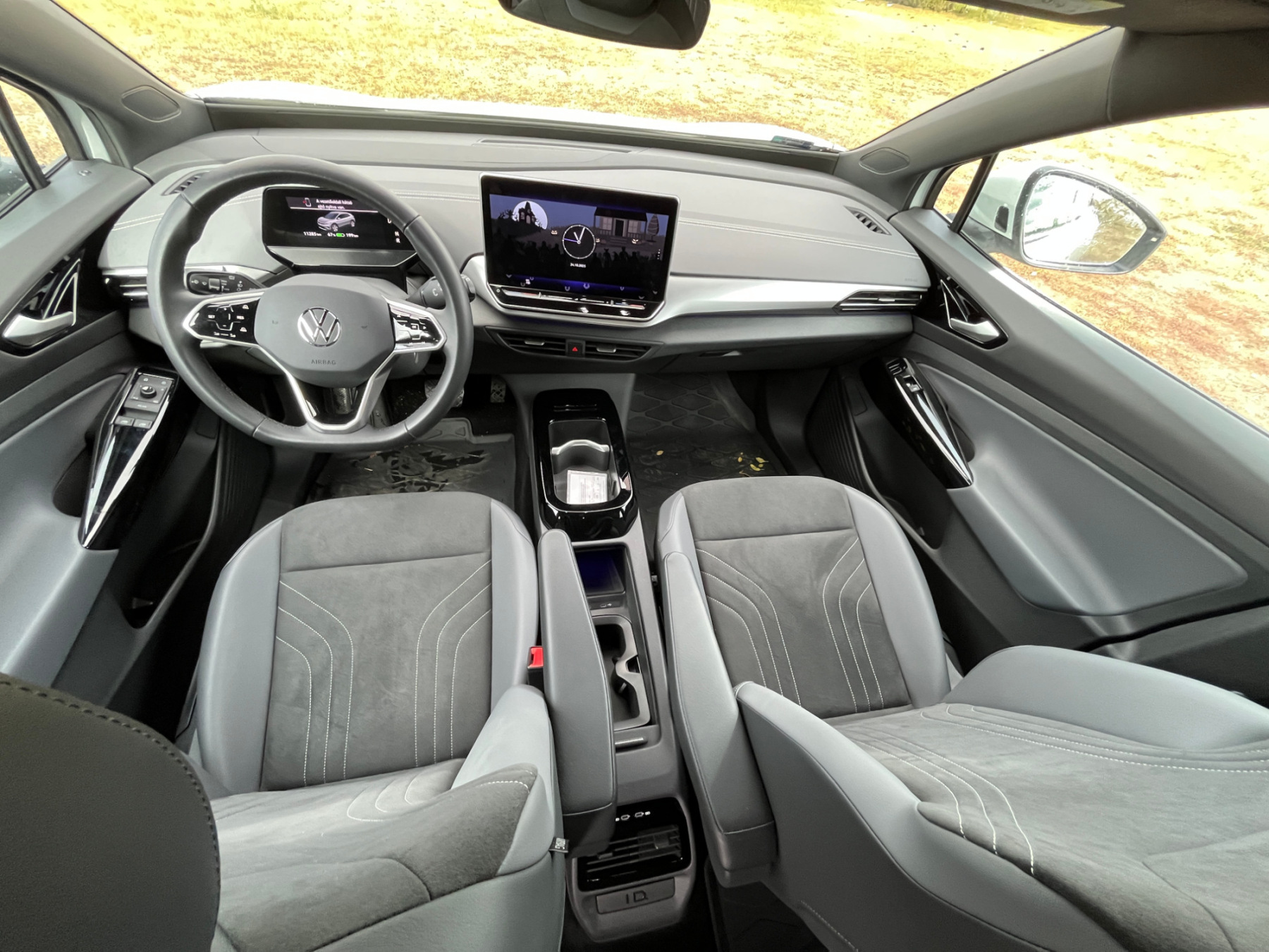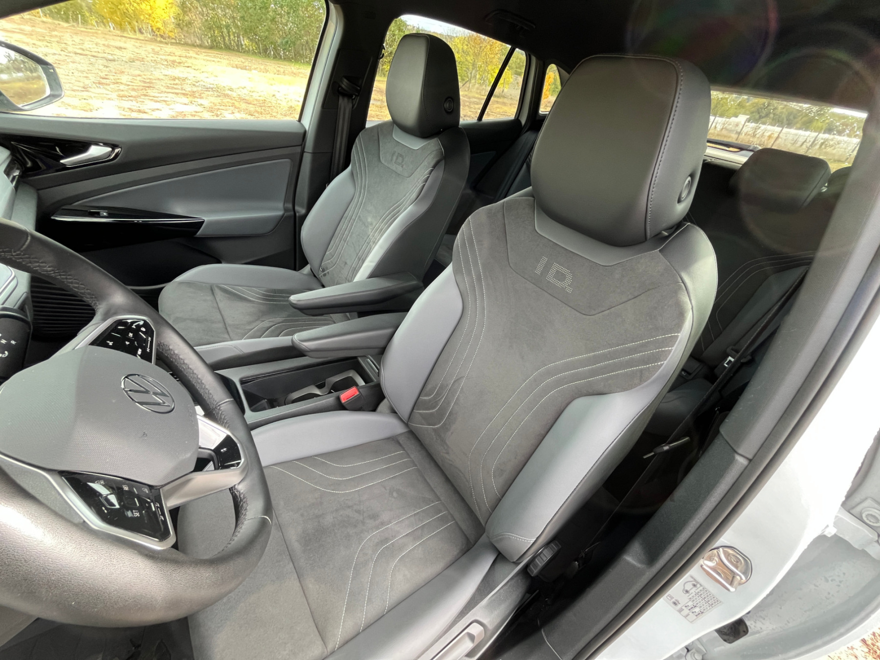 Sok változás a beltérben sincs, kellemes és tisztességes családi autó hatását kelti. Az anyagok nem prémiumok ugyan, de a kocsi nem is akar annak látszani, viszont a VW még mindig nem tudta meghaladni a fényes fekete díszbetéteket... Az alapverzióból az elektromosan állítható üléseket is kivették, ha valaki az ülések magasságán is szeretne állítani, annak nem lesz elég a legolcsóbb Start-kivitel, az csak a Start Prime-tól alapfelszereltség. Deréktámasz állítás sem került az autóba, viszont cserébe az ülések kényelmesek, jól tartanak, szóval enélkül is el lehet benne lenni. És nem mellesleg tetszetősek is a varrott velúrbetétekkel és az ID.4 díszítéssel. A hátul ülők lábtere is bő, mivel SUV-ról van szó, a fejtérre sem lehet panasz.