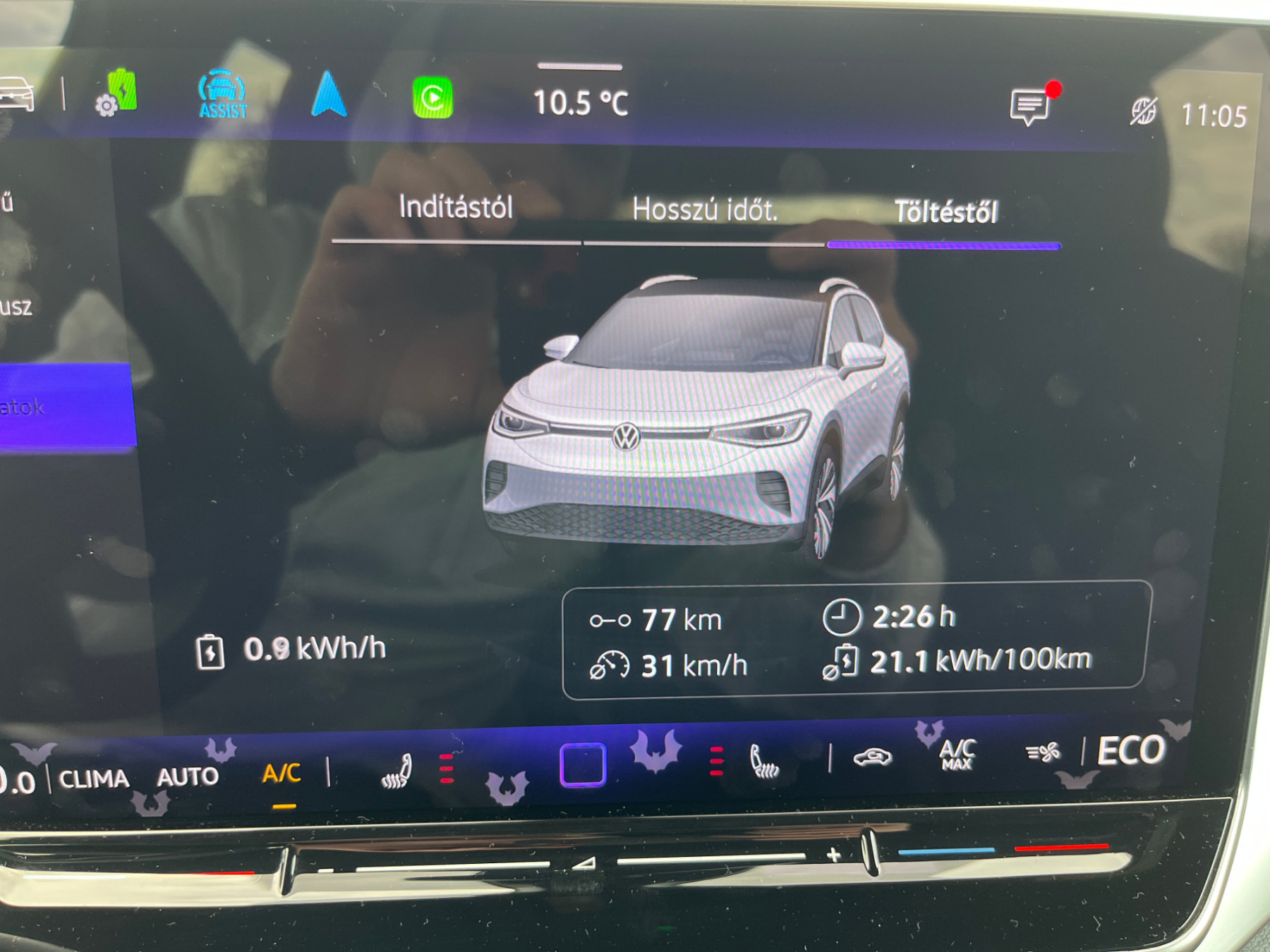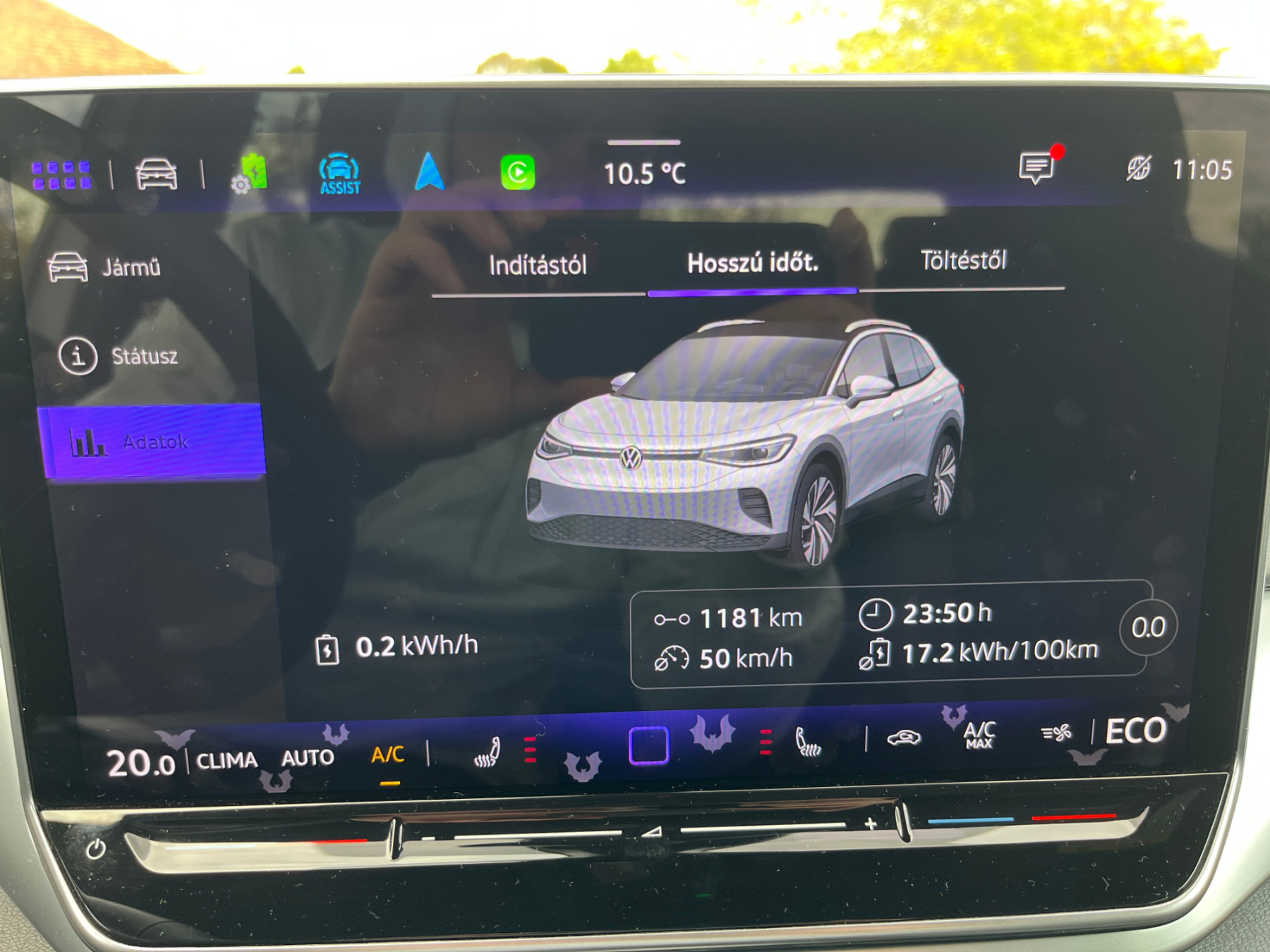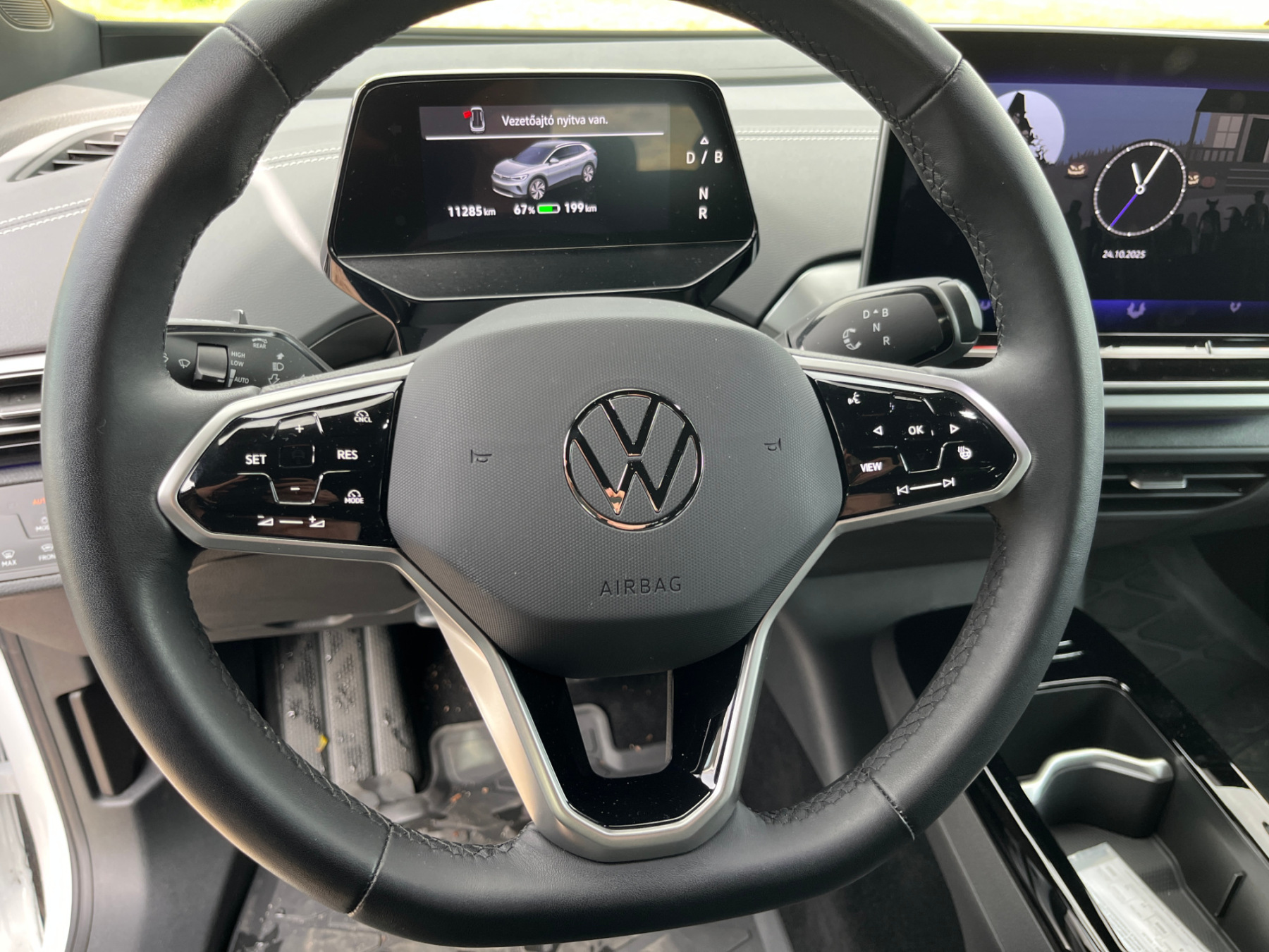 Viszont az autó már megkapta a legfrissebb szoftververziót, ami teljesen jól és gördülékenyen működik, a vezeték nélküli telefoncsatlakozás is simán megy, több nem is kell. Ám a tolatókamera képe rettenetesen torzít, nehéz megítélni, hogy pontosan milyen távolságra vannak és hol helyezkednek el a térben a tereptárgyak, nem lehet csak erre hagyatkozni - szerencsére radar is van az autóban elöl-hátul. Az olcsósítás másik áldozata az aktív sávtartás lett, de a sávelhagyásgátló szerencsére része maradt a konfigurációnak. Alapfelszereltség a fűthető első ülések, szélvédő és kormány, kétzónás klímaberendezés, tolatókamera, kulcs nélküli nyitás és indítás, sávtartó asszisztens, táblafelismerő rendszer, valamint Apple CarPlay és Android Auto csatlakozás. Alapáron jár továbbá a Type 2 töltőcsatlakozó, a hőszivattyús klímaberendezés, a LED-fényszóró, a 18 hüvelykes könnyűfém felni és a távolságtartó (adaptív) tempomat is.