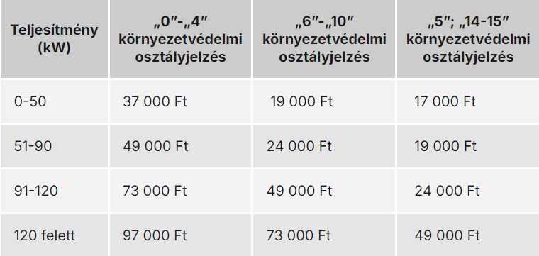 - gyártási évet követő 12-15. naptári évben 195 Ft/kW;