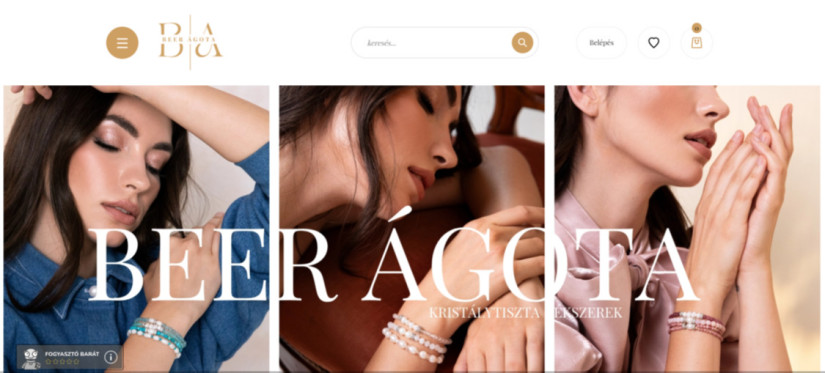 – mondta a Pénzcentrumnak Beer Ágota, prémium, kézzel készített kristályékszereket tervező és készítő kókai vállalkozó, aki korábban főként Facebookon és Instagramon építette az online jelenlétét, de idővel egyre világosabbá vált számára, hogy ezek a platformok önmagukban nem tudják visszaadni azt a vizuális minőséget, márkaélményt és átláthatóságot, amit képviselni szeretne. Úgy véli, a honlap elkészítésével végre olyan letisztult, elegáns, a márkája minőségéhez méltó digitális felületet kapott, amely egységesen és strukturáltan mutatja be az ékszereket és a mögöttük álló szemléletet, és a weboldal stabil, hosszú távon építhető alapot teremtett.