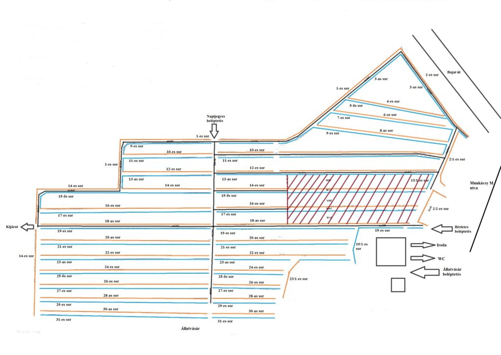 A vásár- illetve a piactéren az árusítás előre megváltott bérelt helyen vagy az üzemeltető által kijelölt napijegyes helyen történhet. Azt is írják, hogy a vásár üzemeltetője fenntartja jogát a helyek éves felülvizsgálatára továbbá indokolt esetben sorrendezésre, a helyek korrekciójára.