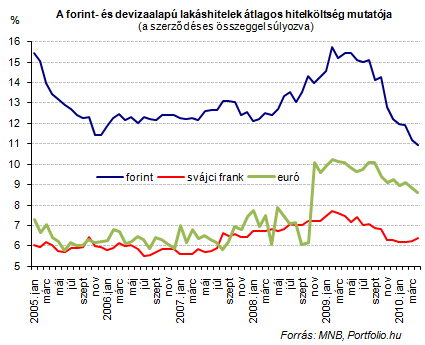 Bár egyes bankoknál az új forinthitelek THM-je már az euróhiteleké alá is "benéz", összességében még mindig közel két százalékkal alacsonyabb az utóbbiak átlagos hitelköltség mutatója, nem is beszélve a frankhitelekéről, melyekkel szemben csaknem öt százalékos a forinthitelek hátránya. E számok a hitelek teljes állományára vonatkoznak, a jelenlegi banki ajánlatokban ettől merőben eltérő kondíciókkal is találkozhatunk. Frankhiteles ajánlattal ráadásul ma már szinte sehol, ezek felvételét ráadásul gyakorlatilag ellehetetlenítette a 45%-os hitel/fedezetérték maximum, szemben az euróhitel 60, és a forinthitel 75%-os korlátjával.