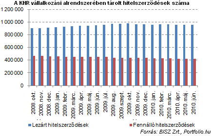 Az Opten adatai és a KHR-ben tárolt adatok mégsem hasonlíthatók össze, míg ugyanis a KHR lakossági alrendszere negatív listás, a vállalkozói hitelnyilvántartás teljeslistás nyilvántartás, amely a vállalkozások referenciaadat-szolgáltatókkal kötött összes hitel- vagy hiteljellegű szerződésének teljeskörű nyilvántartását végzi. Ezért sem lehet messzemenő következtetéseket levonni az alrendszer adataiból, annyi mindenesetre elmondható, hogy a vállalkozások mintegy 43 ezerrel kevesebb fennálló hitelszerződéssel rendelkeznek, mint 2008 októberében (összesen 421 ezerrel), és a tavalyi számhoz hasonló, mintegy 177 ezer vállalkozás szerepel a rendszerben. A teljeslistás vállalkozói hitelnyilvántartáson túl a negatív listás (egy hónapon túli és egymillió forint feletti) bankszámla sorbanállásokat és a készpénz-helyettesítő fizetési eszköz elfogadásával való visszaéléseket is tárolja a rendszer.