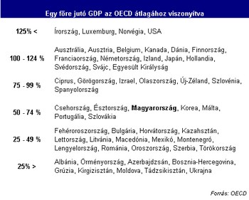 A legutóbbi, 2002-es felmérés óta az egy főre jutó GDP alapján készített rangsor néhány kivételtől eltekintve nem változott különösebben. Olaszország és Svájc is hátrébb került a listán, míg Norvégia pozíciója jelentősen javult - Luxemburgot követően a második helyre került. A skandináv ország ezt annak köszönheti, hogy jelentős olajexportálóként az emelkedő olajárak növelték exportteljesítményét. A régióból Csehország és Szlovákia is előrébb került a listán, Mexikóhoz és Törökországhoz hasonlóan.