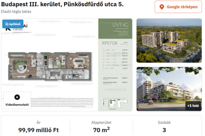 A legnagyobb hirdetési portált vizsgálva összesen három (újépítésű) lakás érhető el a III. kerületben. Érdekesség, hogy mindhárom ingatlan a Pünkösdfürdő utcában található. Az egyes szám alatt a Pünkösdfürdői strandtól mindössze 200 méterre épülő projektben kínálják eladásra ezt a háromszobás, keleti tájolású, rendkívül világos lakást.