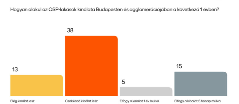 A szavazásból az is kiderül, hogy a piaci szereplők egy része rövid távú problémákra számít: 15% szerint a kínálat 5 hónap múlva fogyhat el, míg 5% úgy látja, hogy akár 1 év múlva teljesen elfogyhat a kínálat. Ez azt sugallja, hogy az OSP-lakások iránti kereslet a jövőben is magas maradhat, ugyanakkor a kínálati oldalon komolyabb korlátokkal kell számolni.