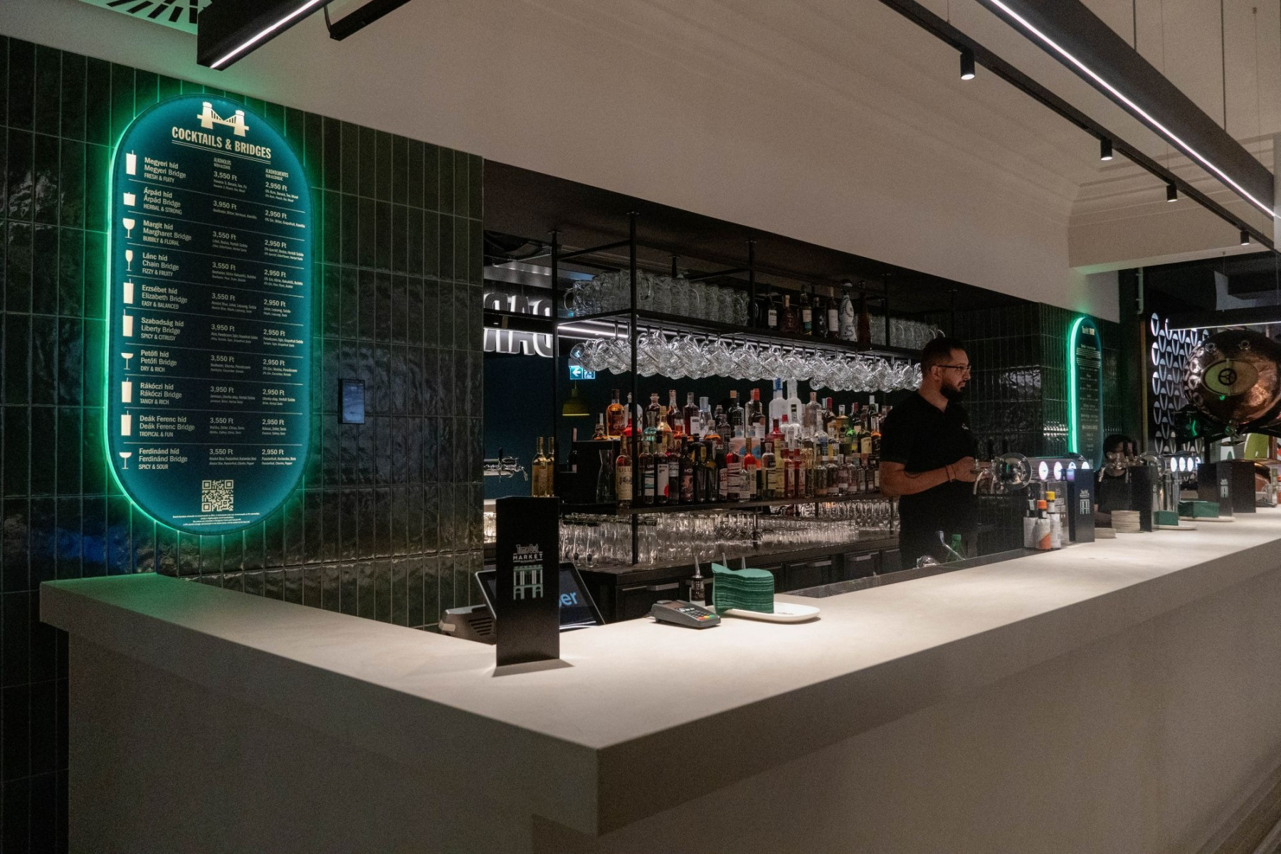 A budapesti Time Out Market sajtómegnyitóján végigkóstolhattuk a kínálatot: a menük és árak alapján egyértelmű, hogy a piac a „megfizethető prémium” kategóriát célozza: a street foodtól a fine‑inspirált tányérokig terjedő fogások többsége 3–9 ezer forint között mozog, különlegesebb húsok, tenger gyümölcsei és chef‑dish‑ek esetén pedig 10 ezer fölötti tételekre is számítani kell.