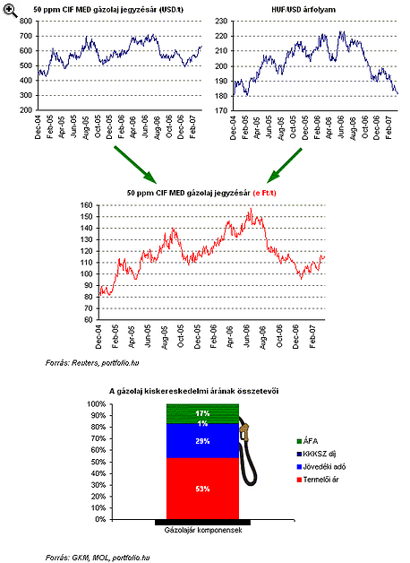 A gázolaj esetében 2.8%-os emelkedés volt tapasztalható dollárban, ami forintban kifejezve szintén alacsonyabb, 1.7%-os emelkedésnek felelt meg.