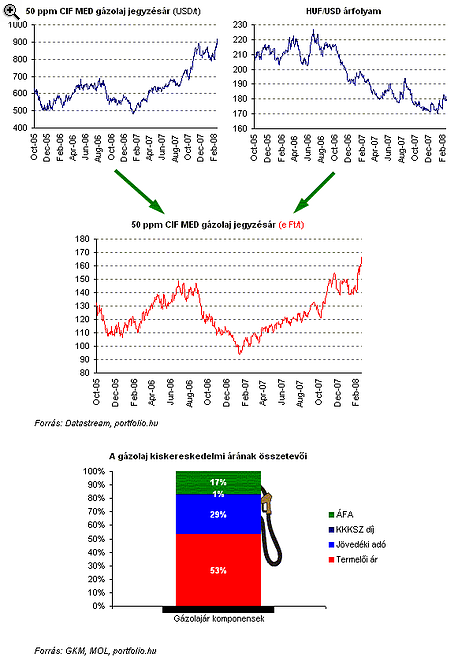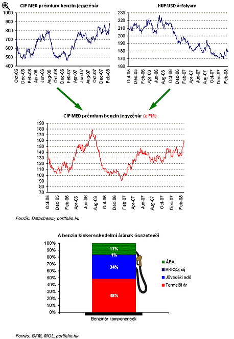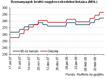 Mindennek hatására a MOL bruttó nagykereskedelmi listaára a 95-ös benzinre 284.48, míg a gázolajra 292.92 forint lesz szerdától. Az áremelések azt jelentik, hogy egyre kevesebb kutat lehet majd találni, ahol 300 forint alatt juthatunk az üzemanyagok literjéhez.