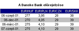 A devizaárfolyamok tekintetében a forintnál rövid távon kismértékű erősödést, majd gyengülést várnak. Egy év múlva 275 Ft-ot érhet majd véleményük szerint egy euró. Gyengülésre számítanak rövid távon a zloty-nál, a cseh és szlovák koronánál is.